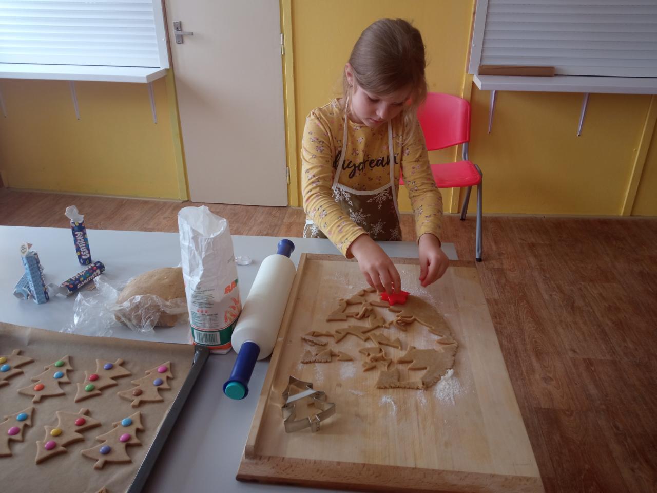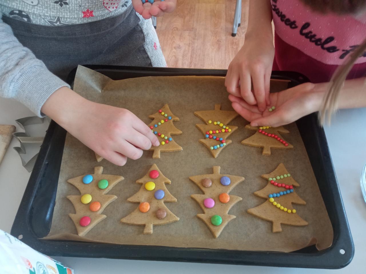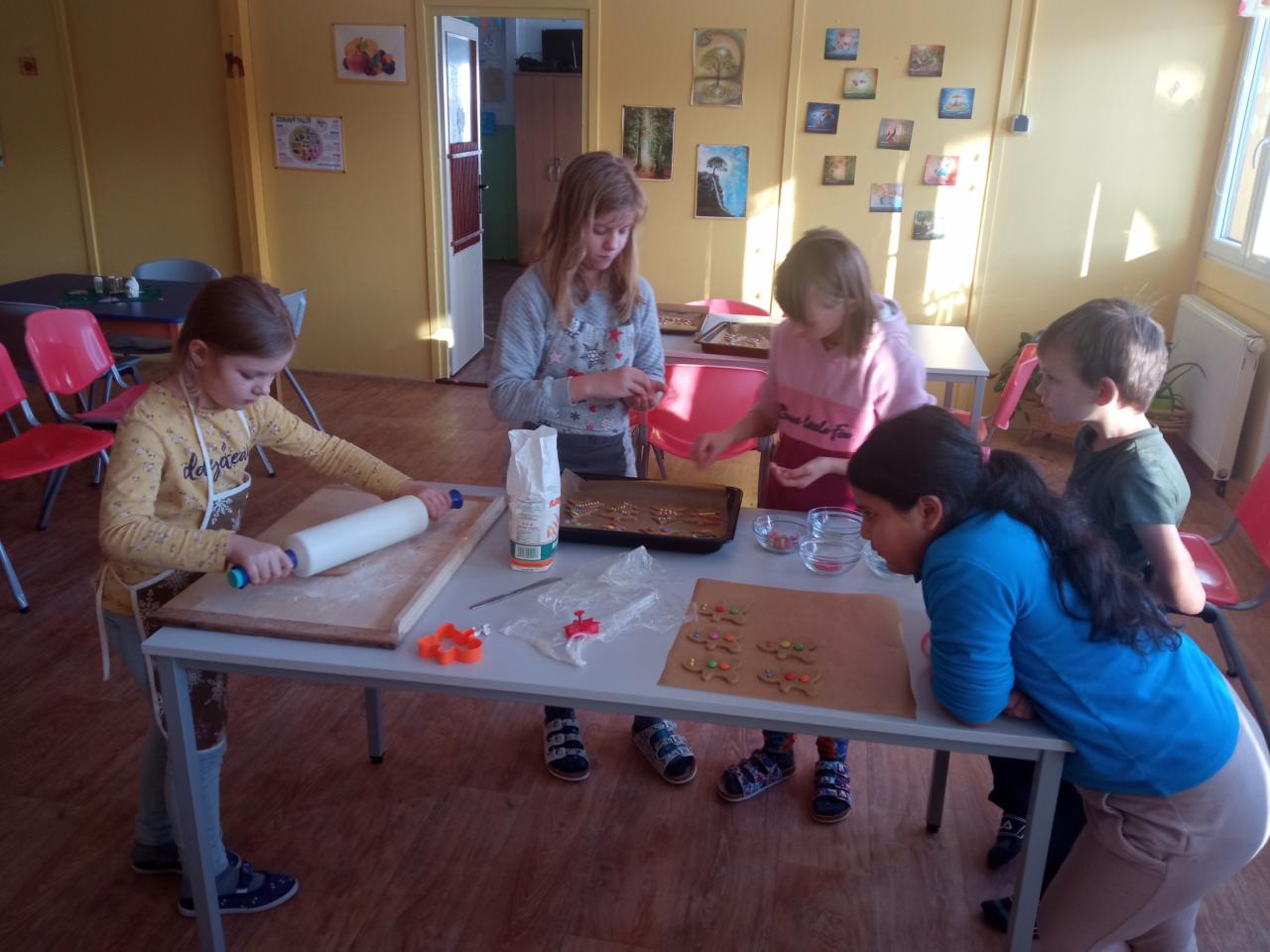 Děti v družině ozdobily a upekly krásné perníčky na vánoční jarmark. Vonící trouba = nejlepší televize.